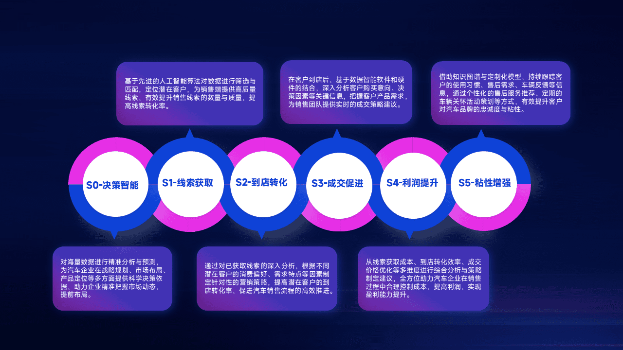 通过拓宽潜在客户来源、、、优化线索分配并提高到店转化率,,,以增强销售效率。。。同时,,,,利用线索数据不断优化分析模型,,,有效提升转化率,,,,扩大营销影响力。。。